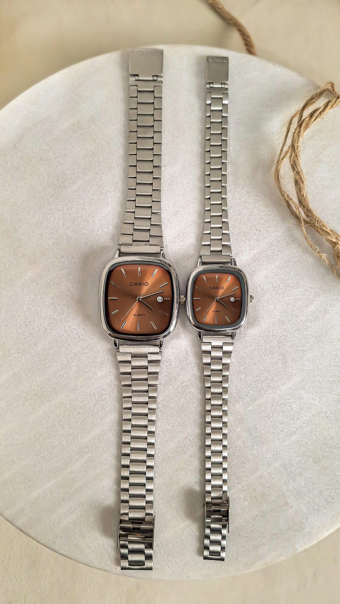 برند ژاپنی کاسیو (Casio) با کیفیت بالا و طراحی دقیق، مجموعههای خاصی از ساعت ست زنانه و مردانه تولید میکند. مقاومت بالا در برابر آب، شیشه ضدخش و طراحی کلاسیک از ویژگیهای آن است.