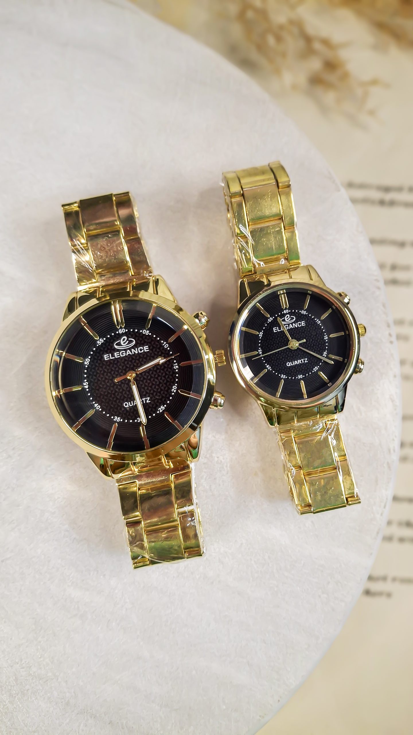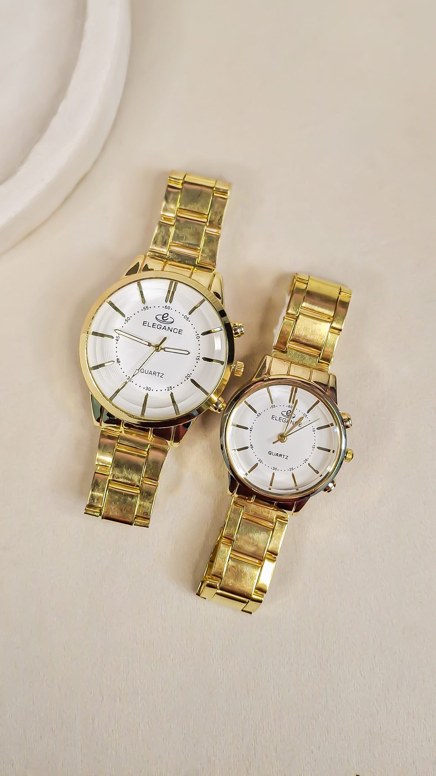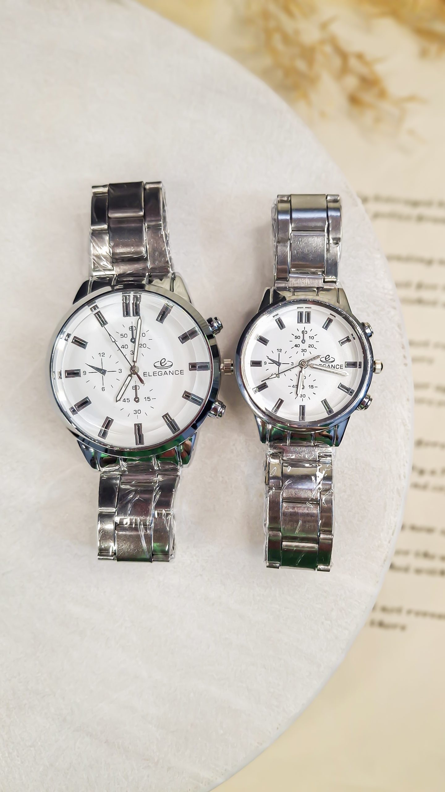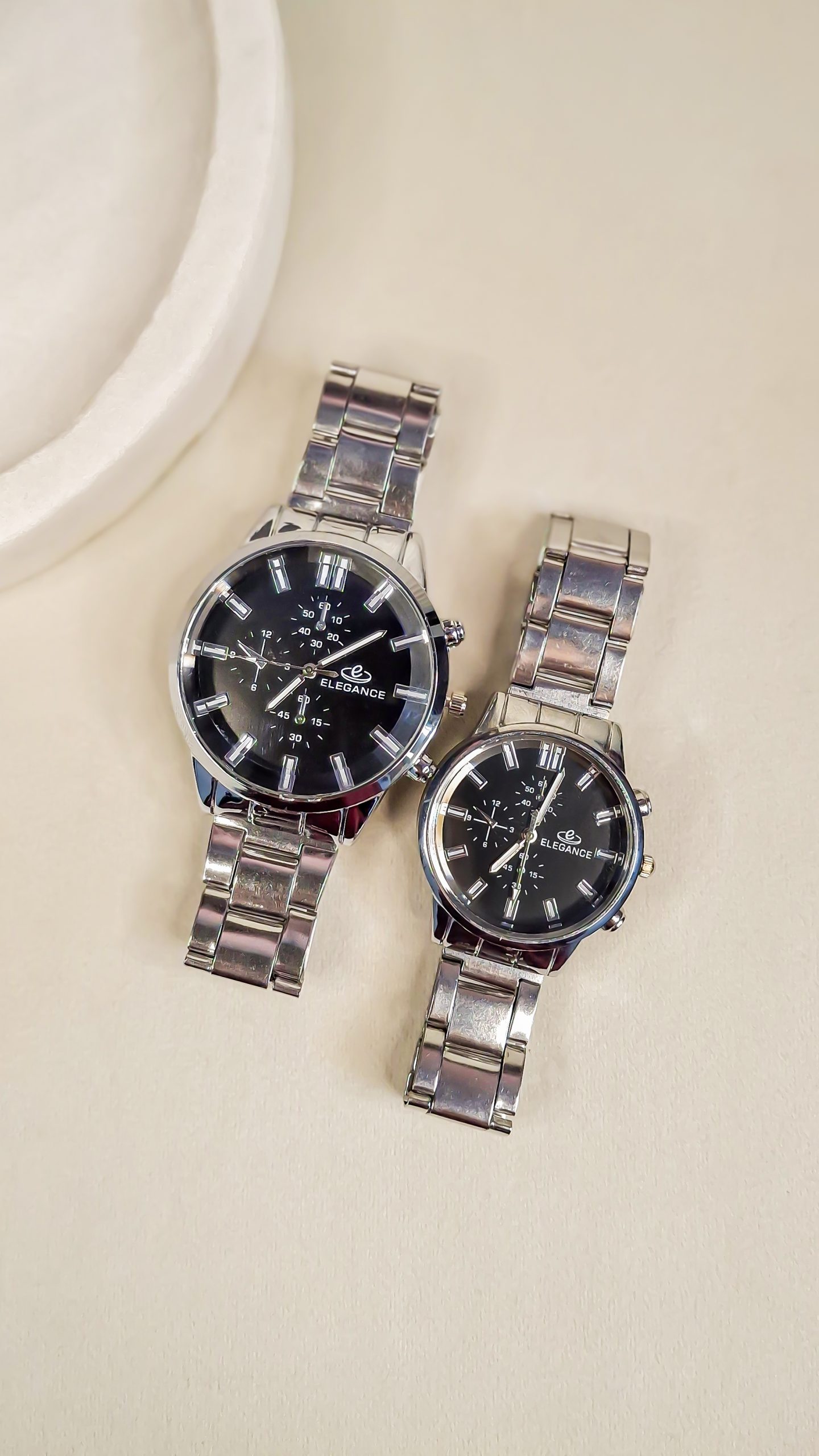 برند الگانس (Elegance) با تمرکز بر ظرافت و طراحی لوکس، ساعتهای ست ایدهآلی برای زوجهایی ارائه میدهد که به دنبال استایل رسمی و خاص (Elegant Style) هستند.