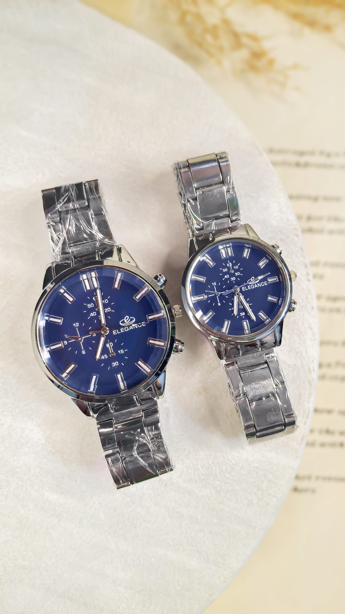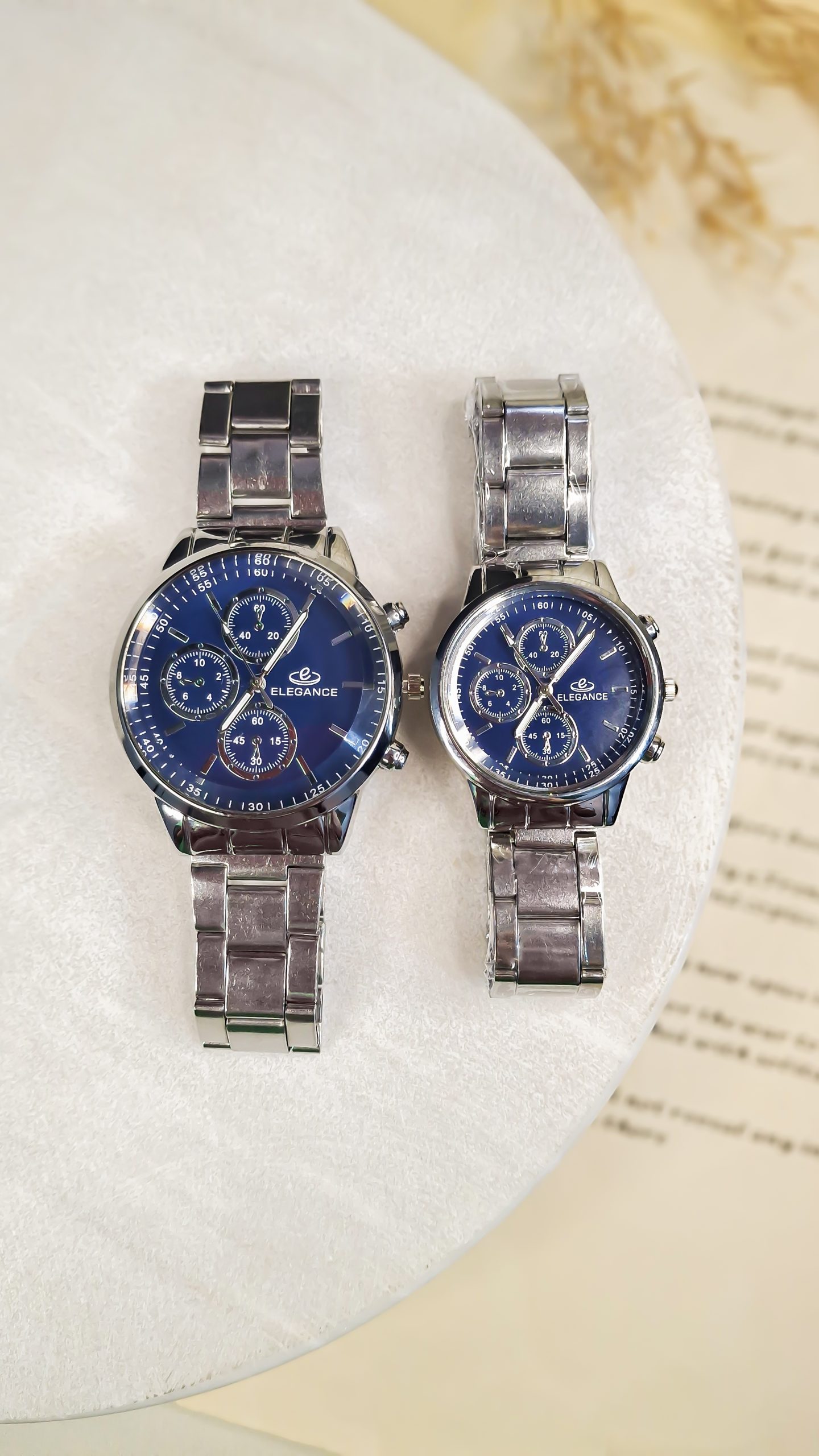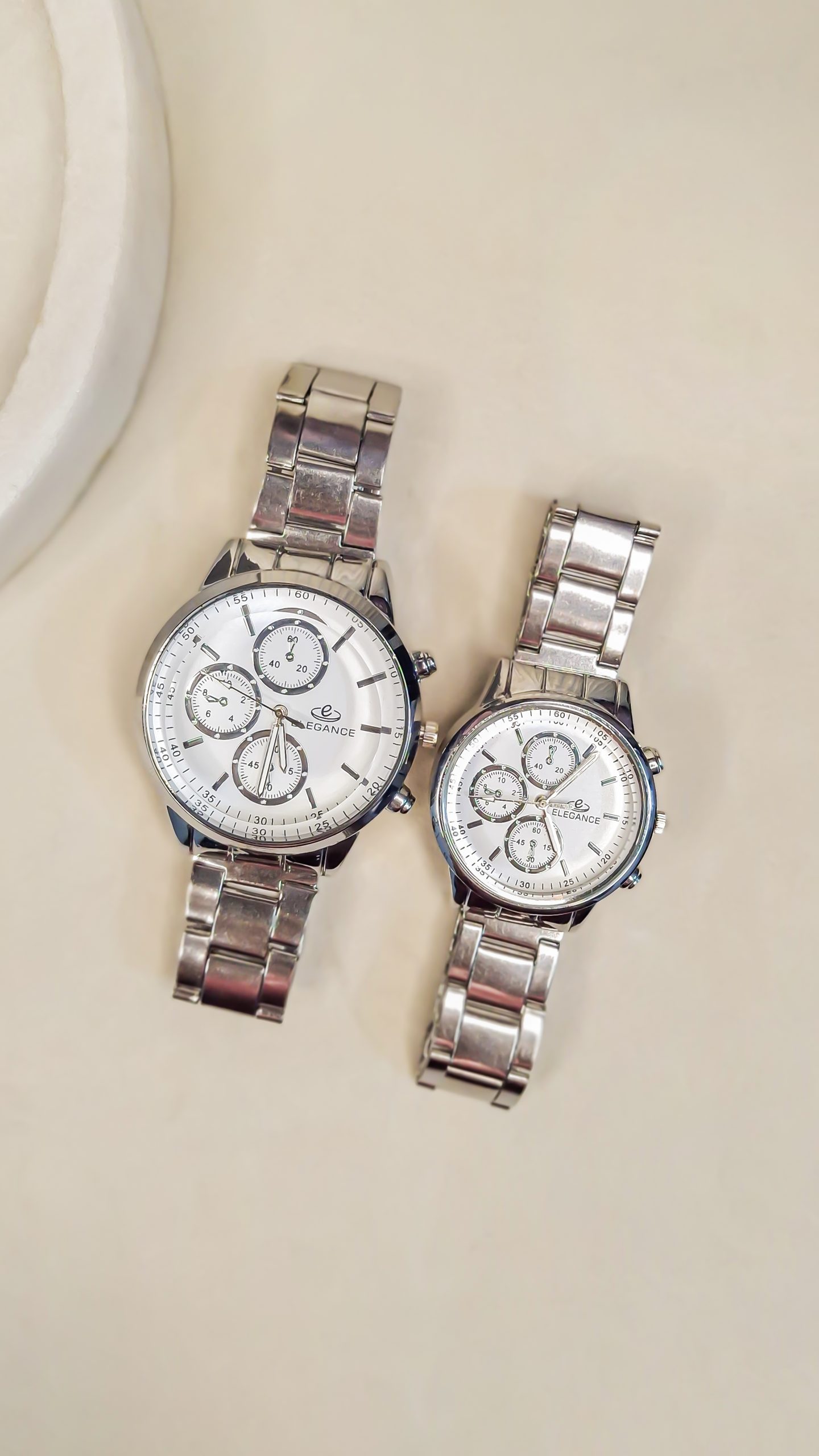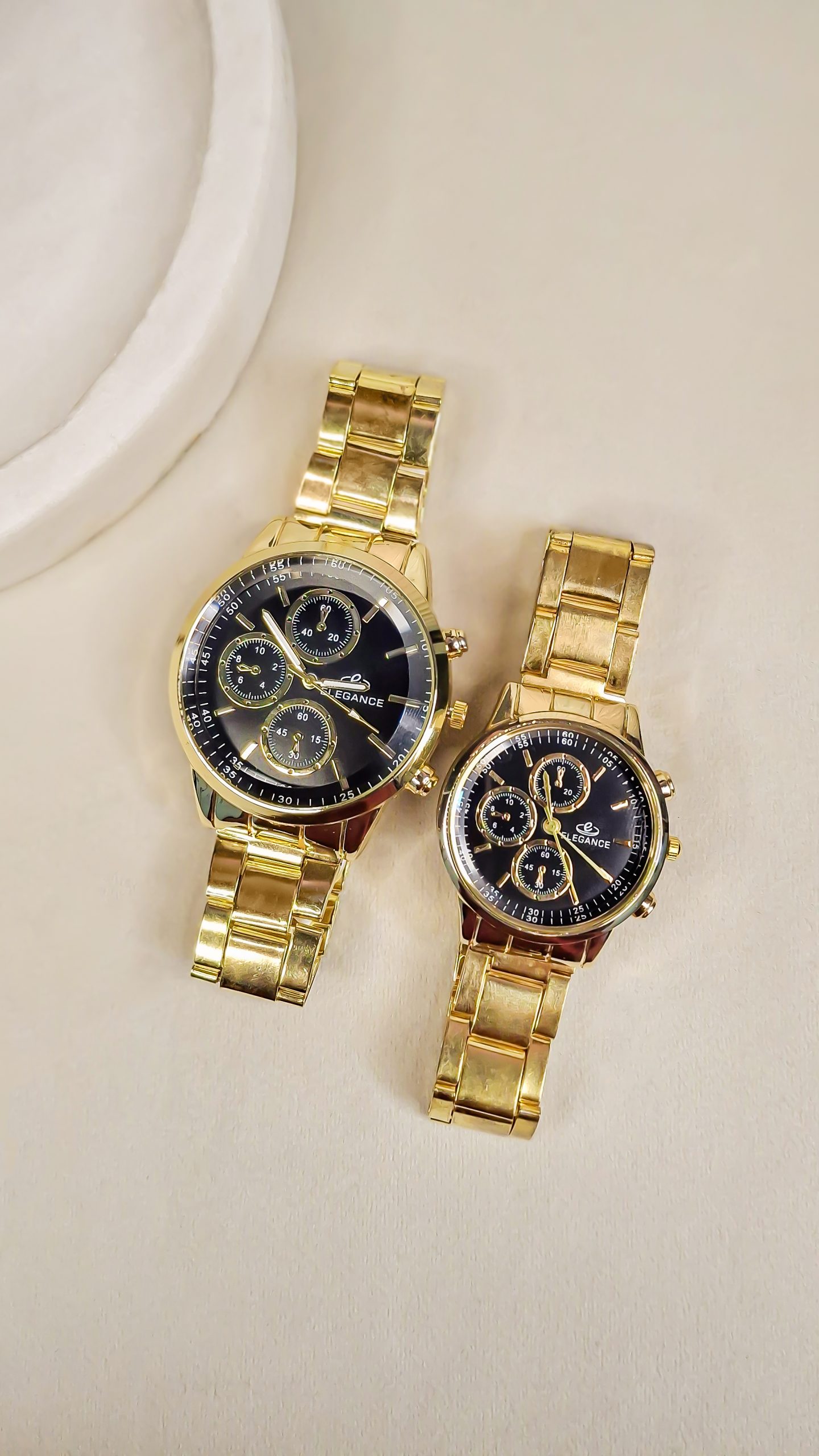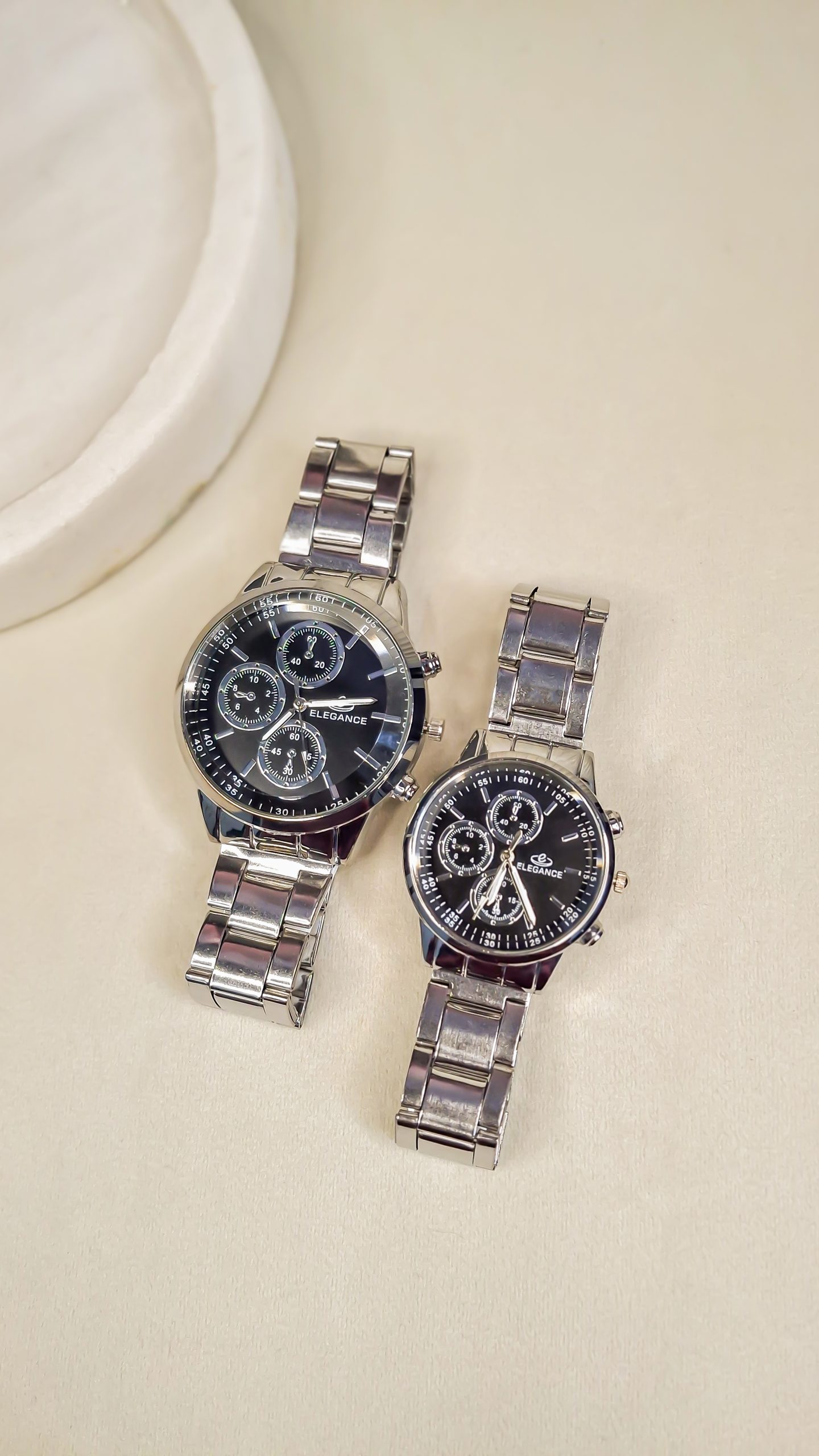 برند الگانس (Elegance) با تمرکز بر ظرافت و طراحی لوکس، ساعتهای ست ایدهآلی برای زوجهایی ارائه میدهد که به دنبال استایل رسمی و خاص (Elegant Style) هستند.