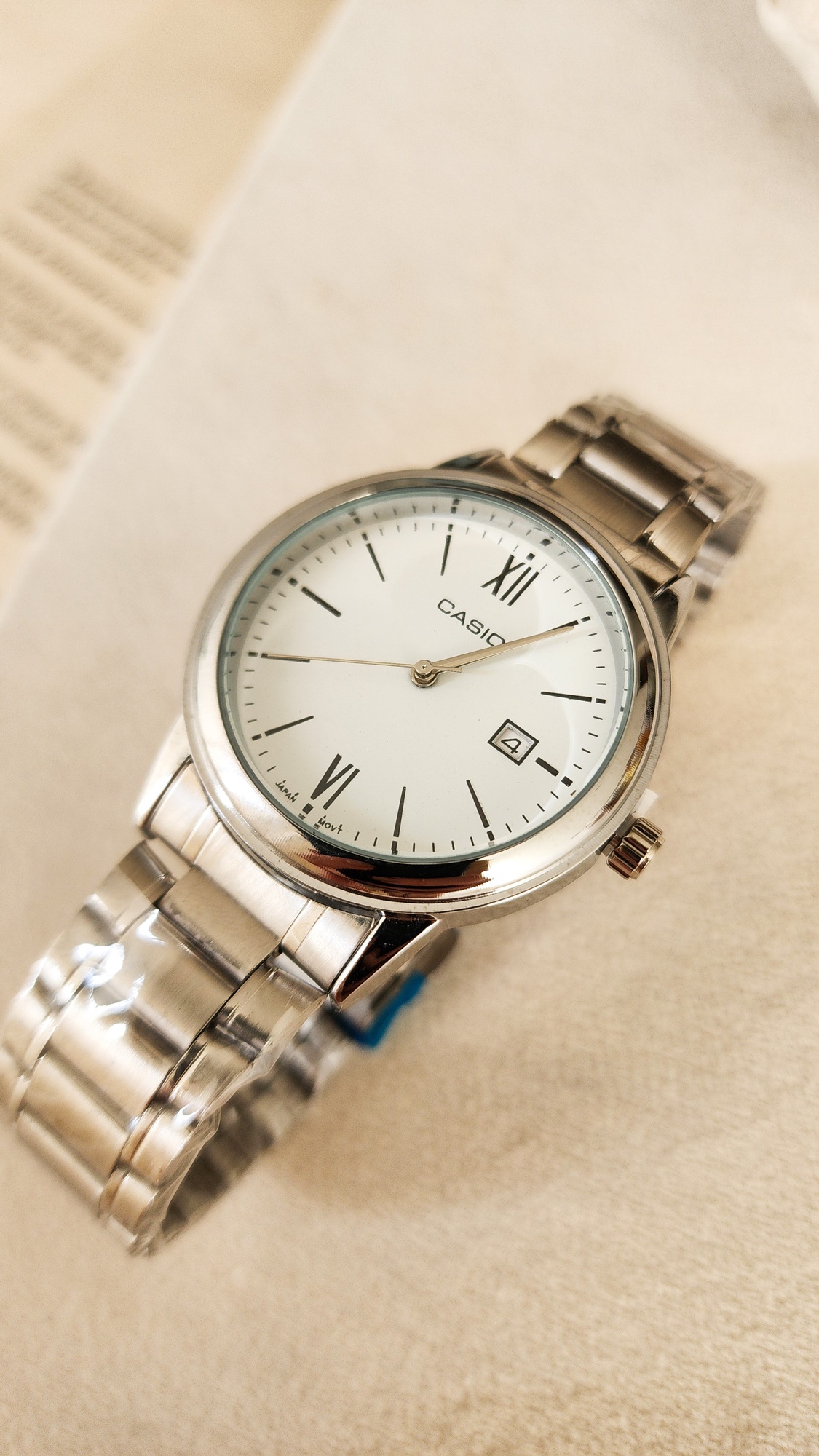 فروش ویژه ساعت ست زنانه و مردانه مدل کاسیو عدد یونانی رنگ سیلور صفحه سفید باارسال رایگان کد 1293