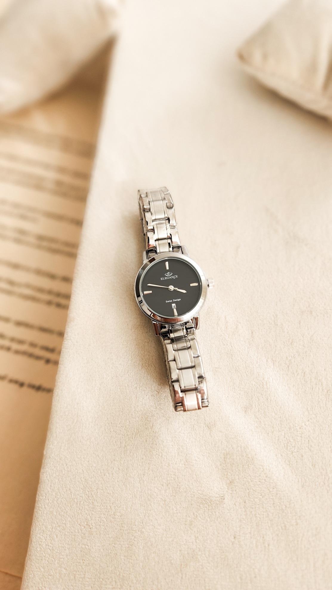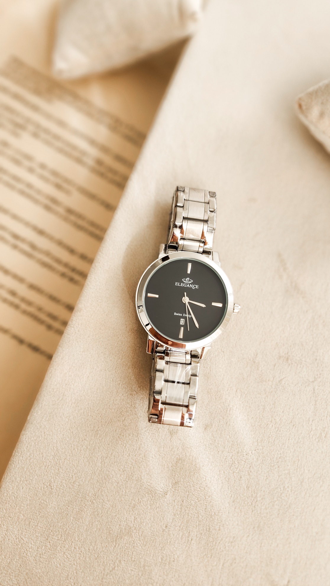 جذاب ترین ساعت ست زنانه و مردانه مدل الگانس رنگ سیلور صفحه مشکی پر فروش و خاص کد 1357