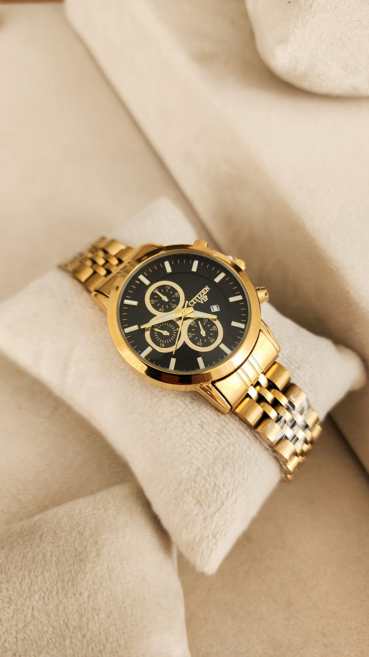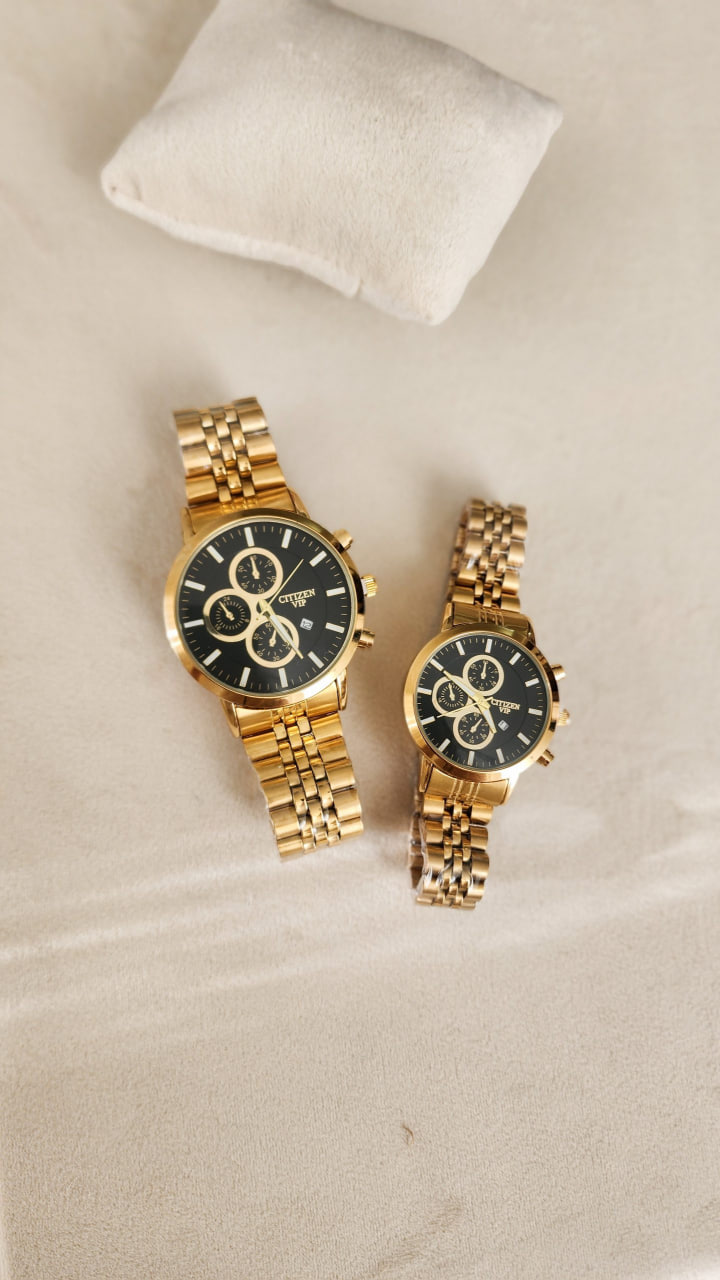 فروش بی نظیر این هفته ساعت ست زنانه و مردانه مدل ستیزن رنگ طلایی صفحه مشکی باارسال رایگان کد 1394