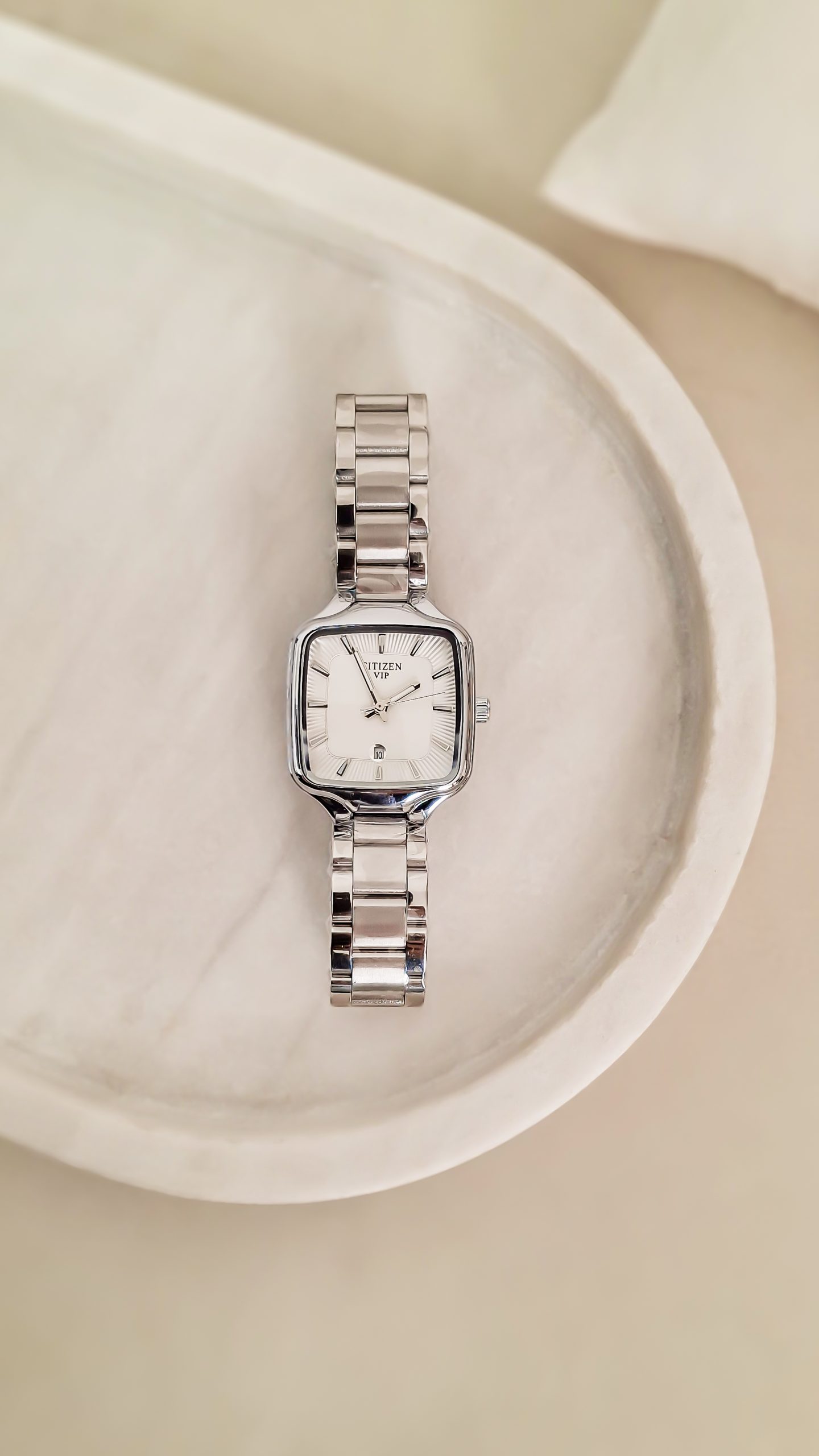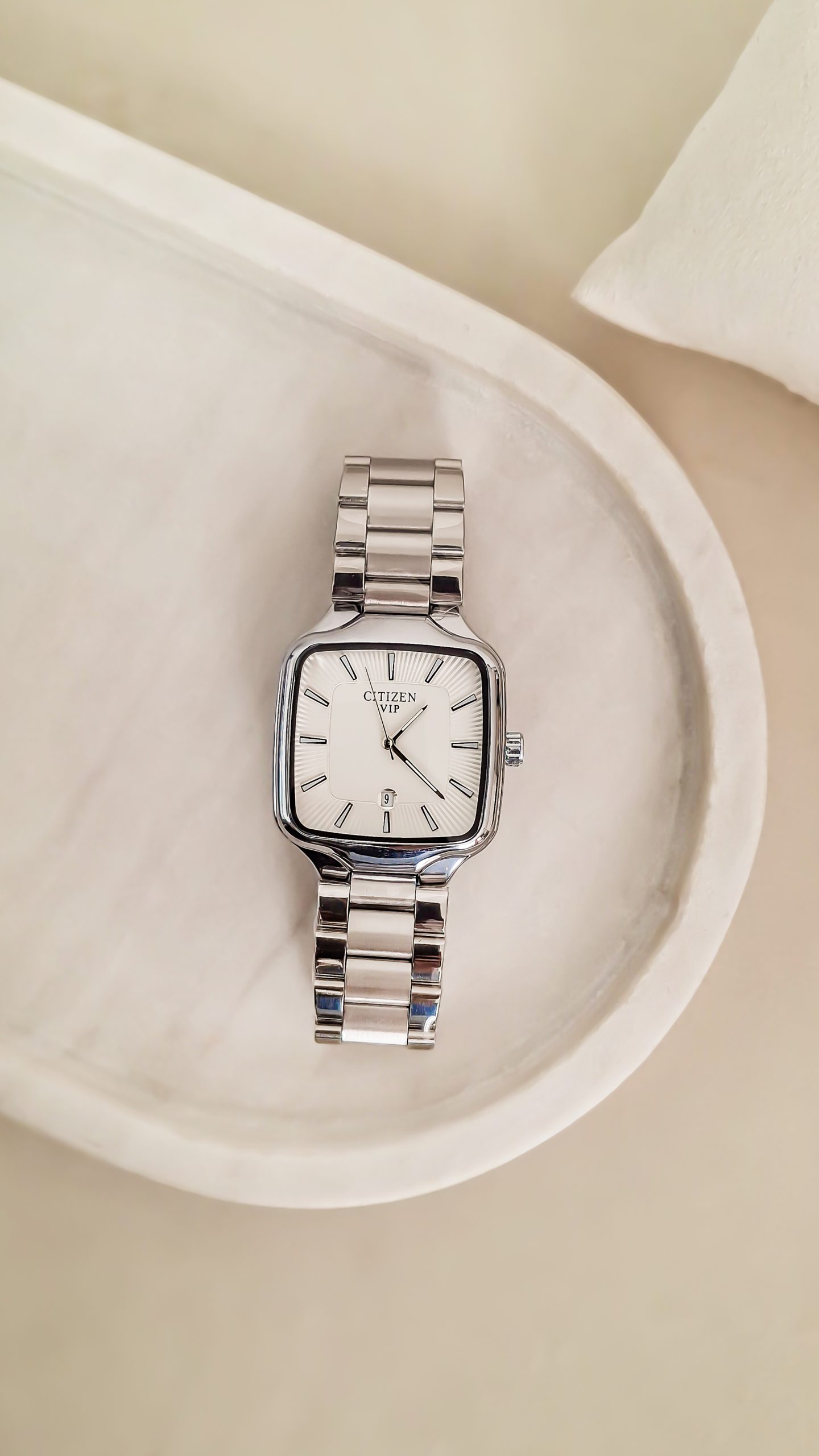جذاب ترین ساعت ست زنانه و مردانه مدل ستیزن مربع های کپی رنگ سیلور صفحه سفید کد 1489