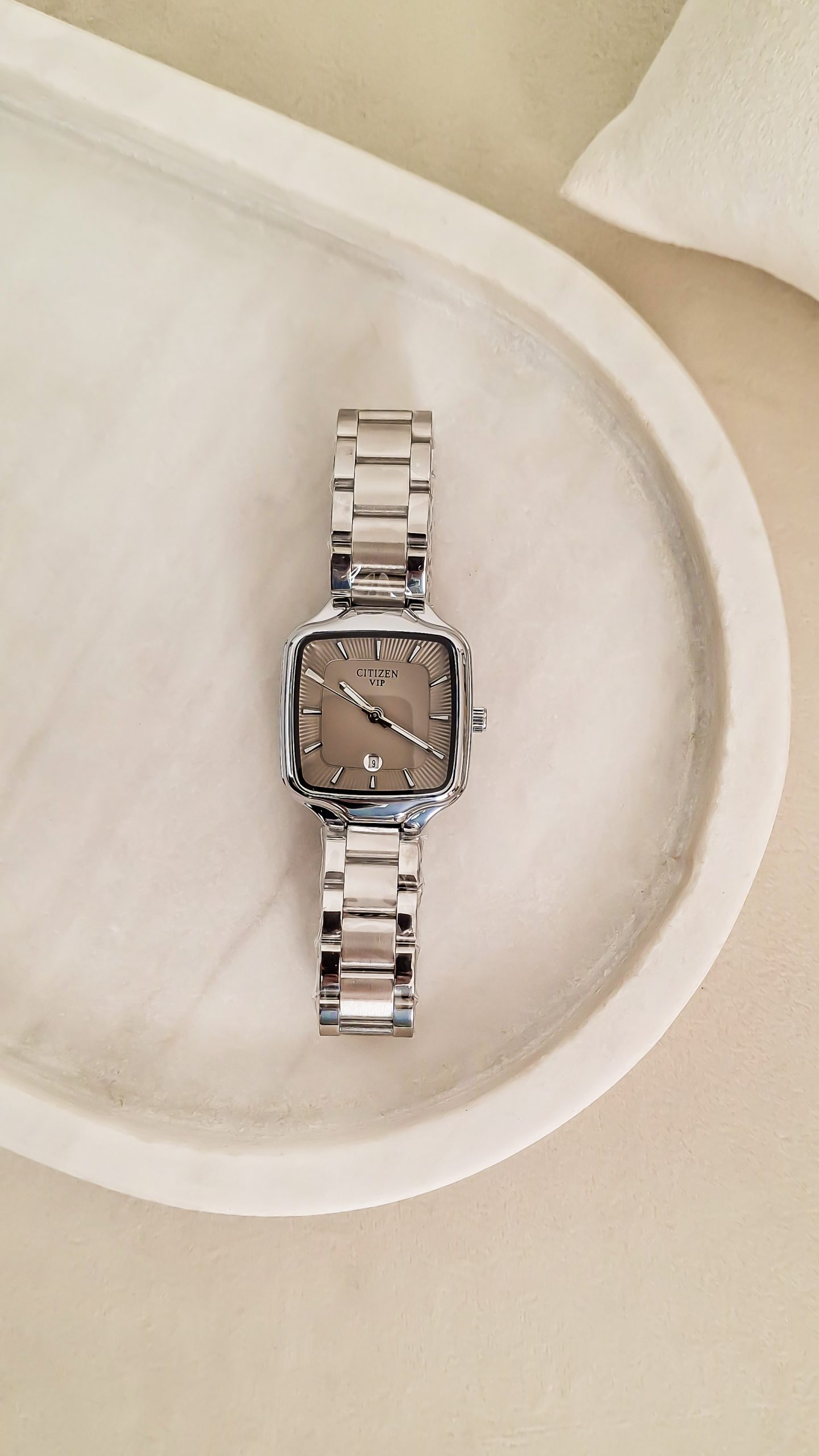 حراج ویژه ساعت ست زنانه و مردانه مدل ستیزن مربع های کپی رنگ سیلور صفحه طوسی کد 1491