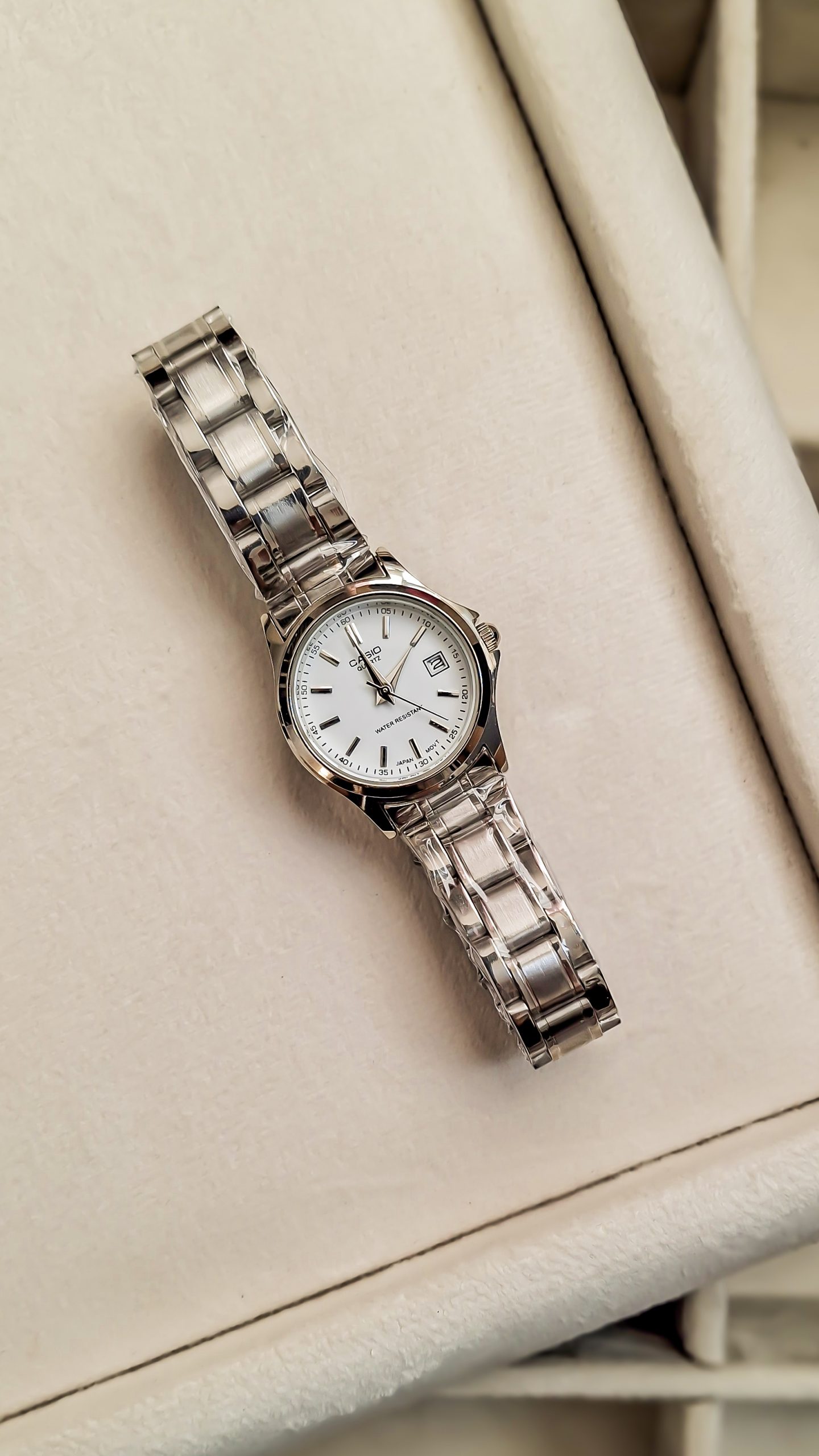 شیک ترین ساعت دخترانه مدل کاسیو رنگ سیلور سفید کد 1535