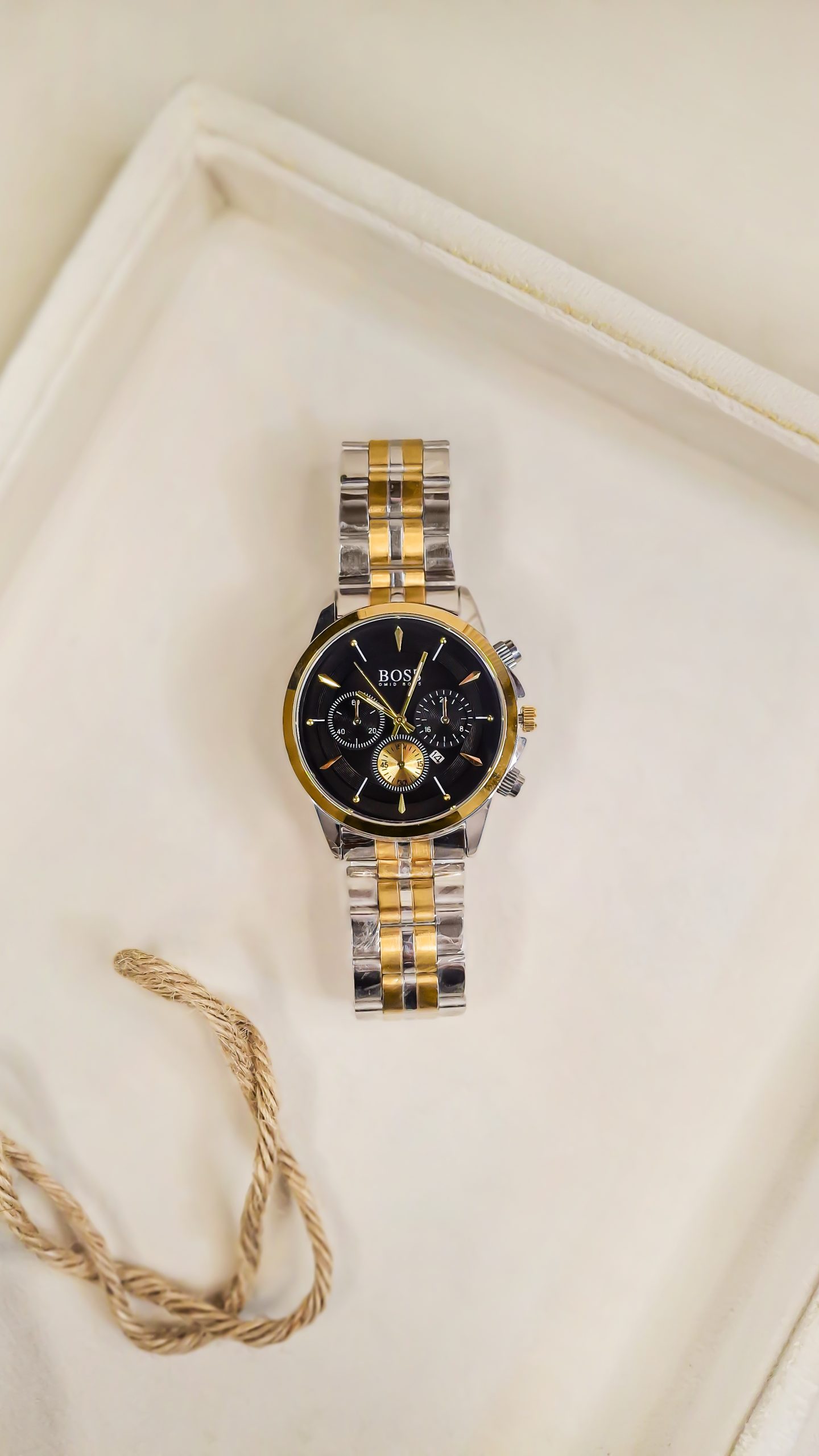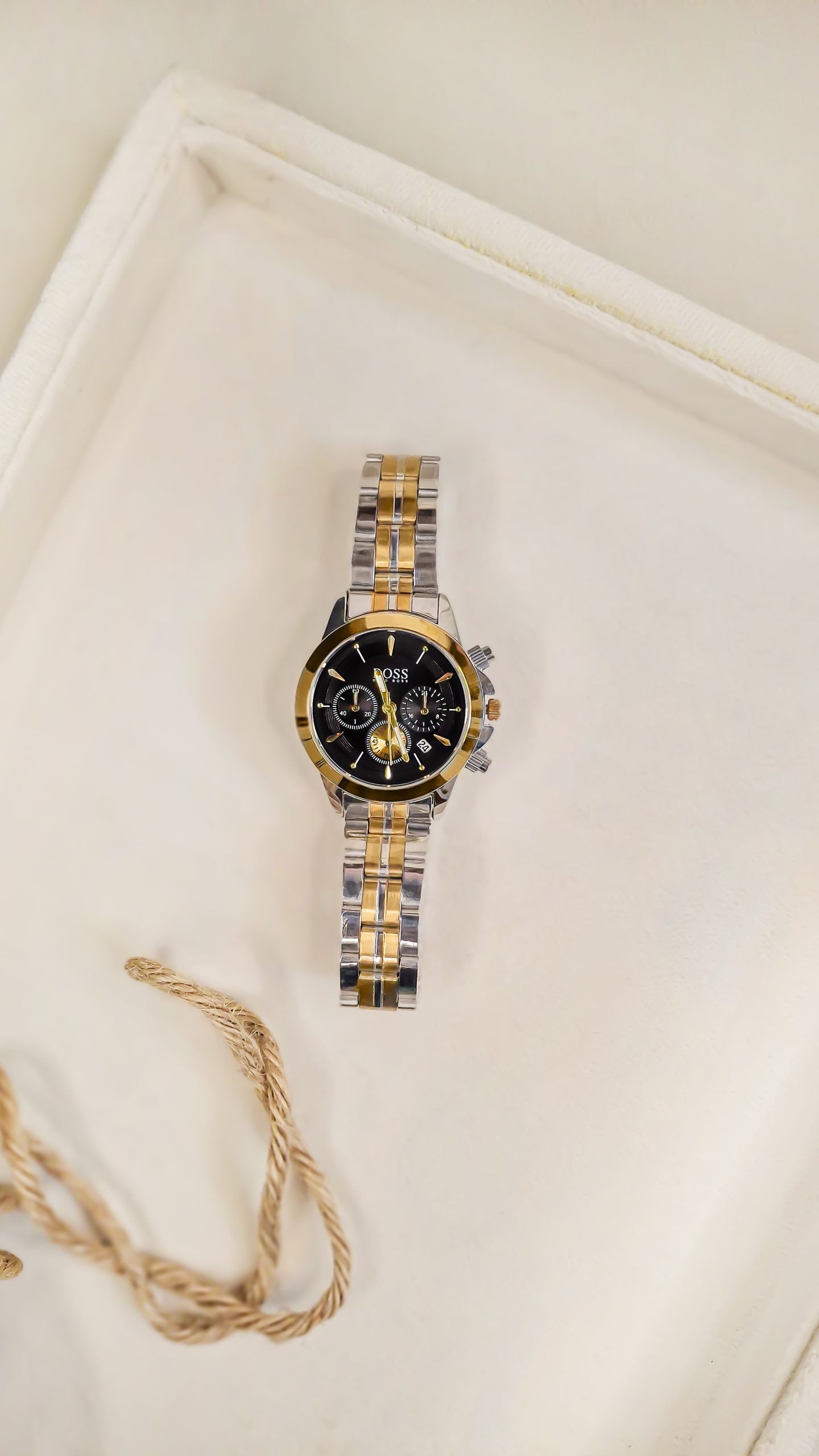 مدرن ترین ساعت ست زنانه و مردانه برند باس رنگ سیلور طلایی صفحه مشکی با ارسال رایگان کد 1620