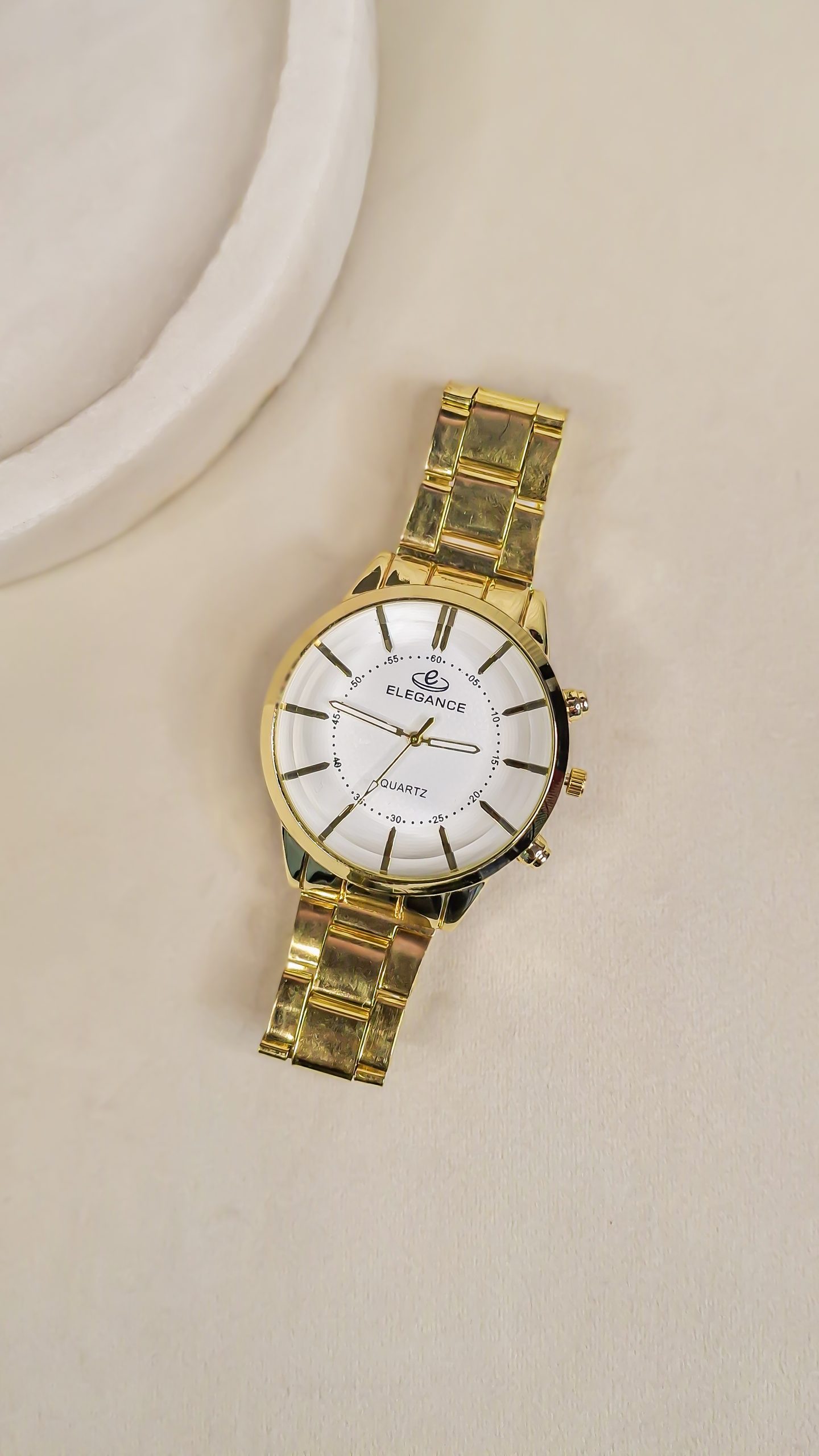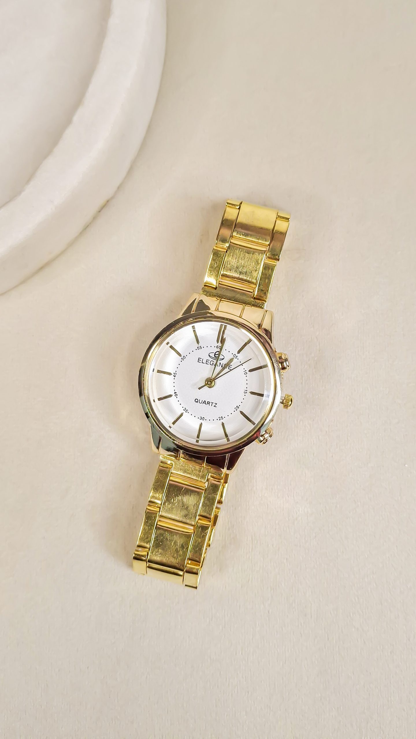 حراج ویژه ساعت ست زنانه و مردانه برند قفلی اقتصادی خطی رنگ طلایی صفحه سفید با ارسال رایگان کد 1648