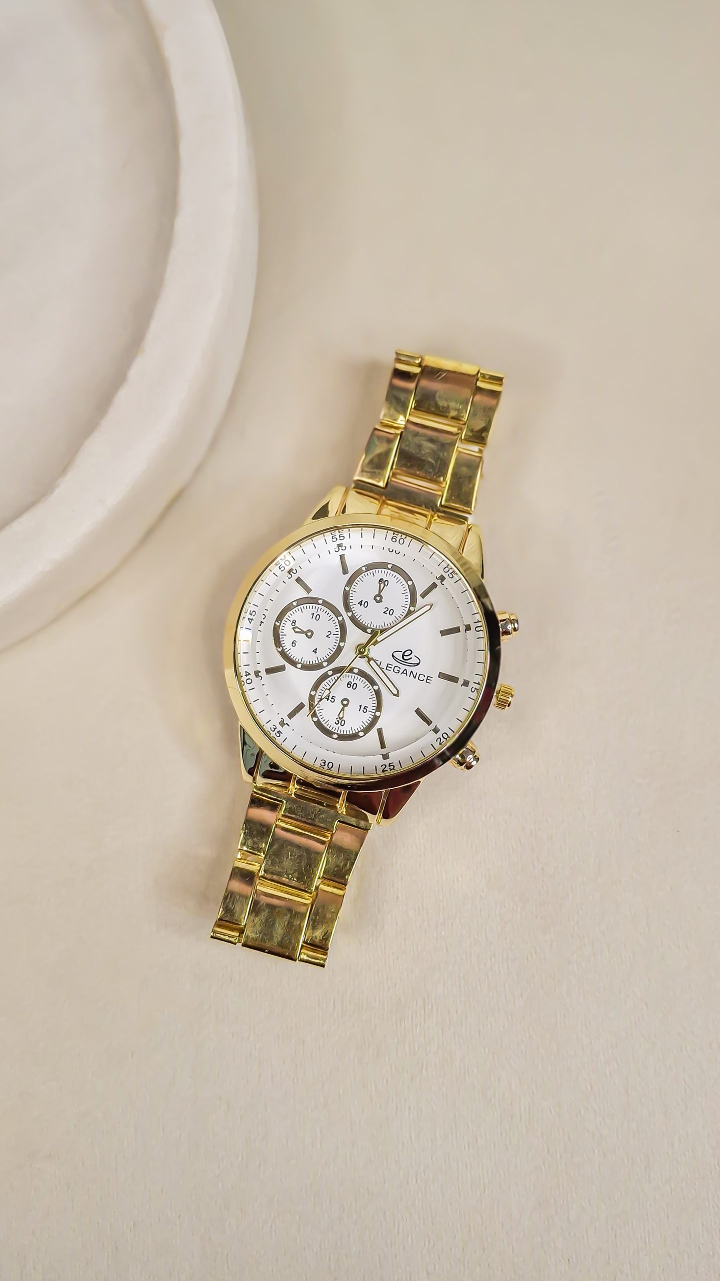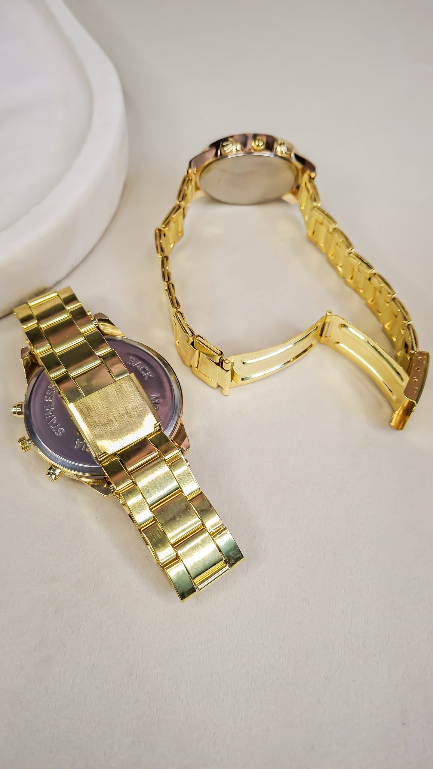 حراج جدید ساعت ست زنانه و مردانه برند قفلی اقتصادی طرح سه موتوره رنگ طلایی صفحه سفید با ارسال رایگان کد 1652